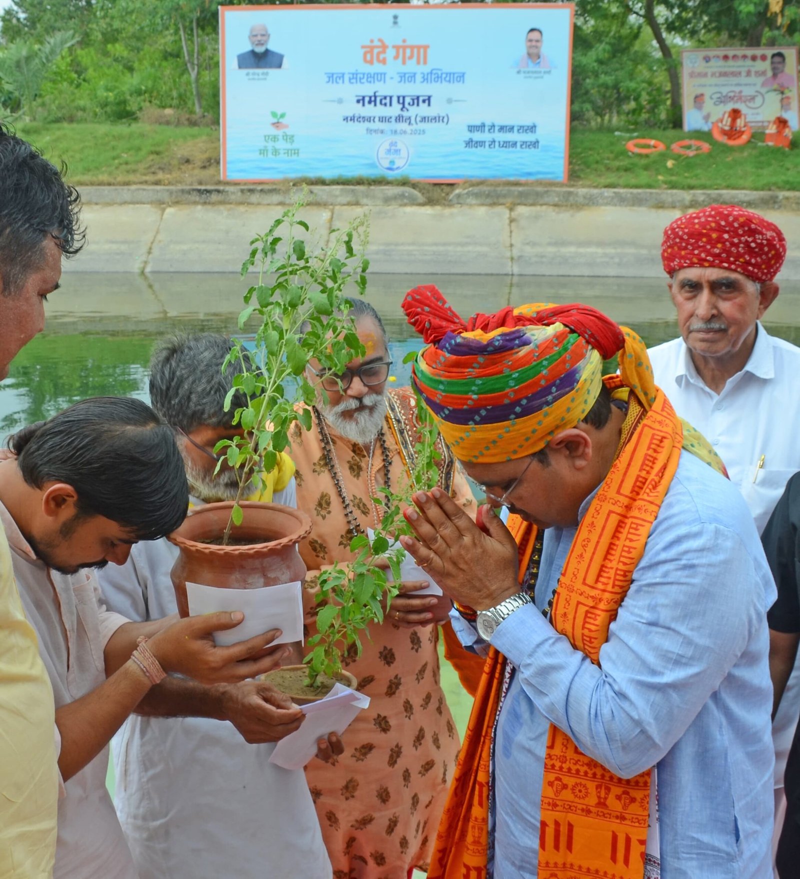 इससे पहले मुख्यमंत्री भजनलाल शर्मा ने वंदे गंगा जल संरक्षण-जन अभियान के तहत सीलू घाट पर नर्मदेश्वर महादेव मंदिर के दर्शन किए तथा मां नर्मदा की विधिवत पूजा-अर्चना एवं आरती करते हुए प्रदेश की खुशहाली एवं सुख-समृद्धि की कामना की। इस दौरान मुख्यमंत्री ने मंदिर परिसर स्थित वाटिका में पीपल का पौधा लगाकर दिया पर्यावरण संरक्षण का संदेश दिया।