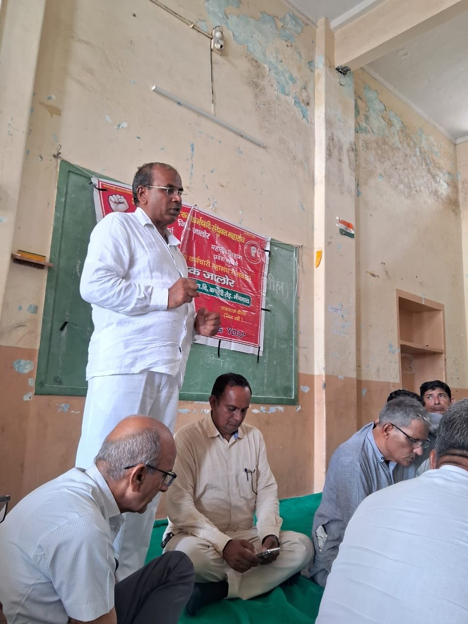 बैठक को संबोधित करते हुए संगठन के जिला अध्यक्ष किशन लाल सारण ने बताया कि आज वर्तमान में कर्मचारियों एवं सेवा निवृत कर्मचारियों के लिए पीएफआरडीएफ बिल को रद्द किया जाना, ओपीस जो पुरे भारत के कर्मचारियों के लिए राजस्थान की देन है यथावत रखा जाना,सरकारी विभागों का निजीकरण बंद करना,पीपी मोड पर आधारित व्यवस्था को समाप्त करना, राज्य कर्मचारियों के लिए पारदर्शी एवं स्पष्ट स्थानांतरण नीति लागू किया जाना, प्रत्येक राजकीय विद्यालयों में शारीरिक शिक्षकों की नियुक्ति किया जाना,ग्रामीण क्षेत्रों में कार्यरत कर्मचारियों को ग्रामीण भत्ता स्वीकृत करना,माह जनवरी 2020 से माह जून 2021 तक महंगाई भत्ते की एरियर राशि का भुगतान किया जाना, पुलिस एवं आपातकालीन सेवा के कर्मचारियों को साप्ताहिक अवकाश देना, पुलिस कर्मों की लंबित पदोंती शीघ्र करना, तृतीय श्रेणी शिक्षकों के स्थानांतरण किया जाना समस्त विभागों में लंबित डीपीसी करना,बोर्ड निगम स्वायत साशी संस्थाओं पंचायती राज संस्थानों में संविदा कर्मियों की न्यूनतम वेतन निर्धारित करना सहित मांगों पर रणनीति तय की गई धरने प्रदर्शन में जालौर जिले के समस्त घटक संगठनों के हजारों कर्मचारी भाग लेंगे।