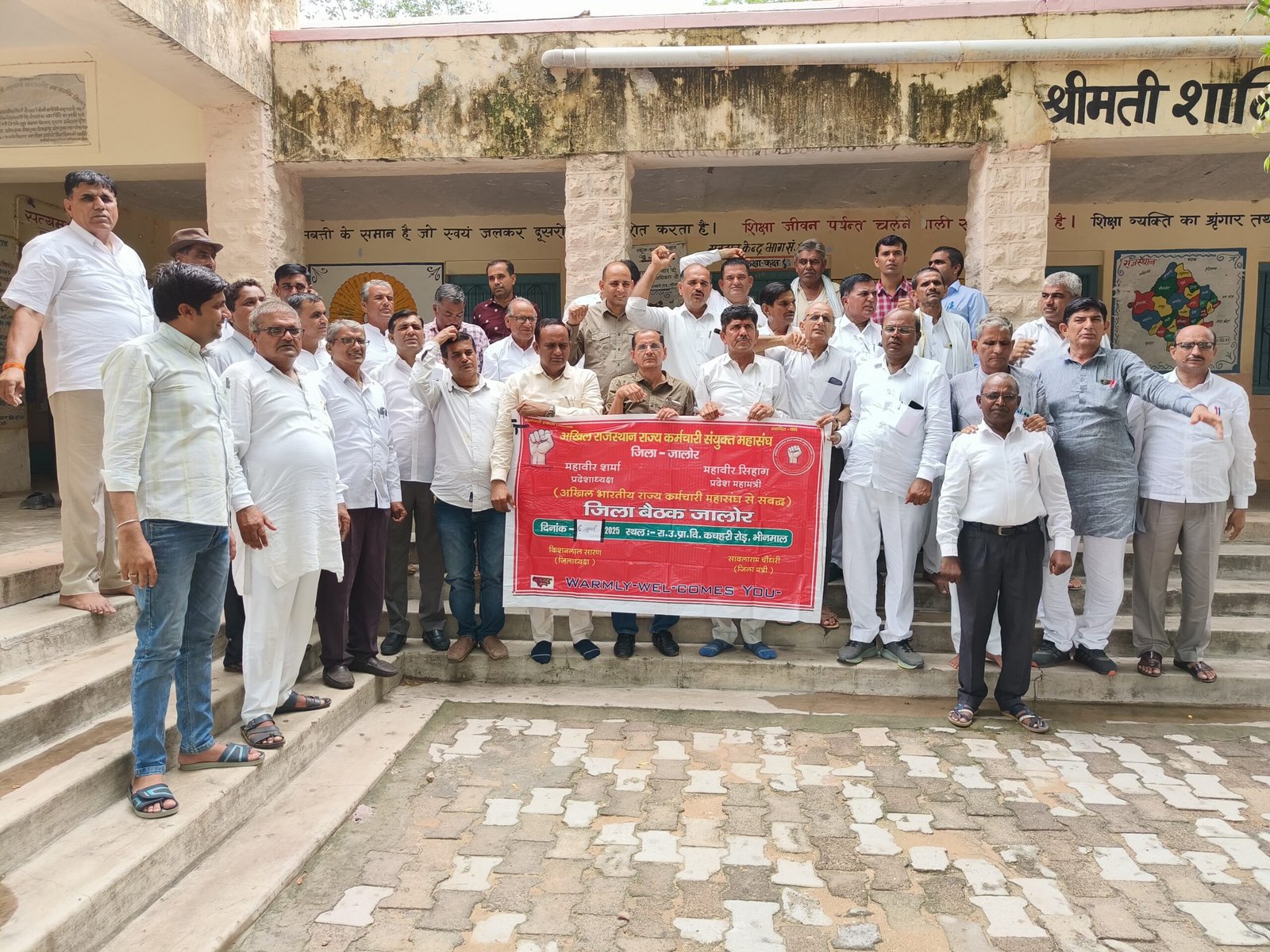 ओमप्रकाश बांगड़वा, सांचौर। जिला जालौर की बैठक का आयोजन राजकीय उच्च प्राथमिक विद्यालय रोड कचहरी रोड भीनमाल में आयोजित हुई।वर्तमान समय में आम कर्मचारी आंदोलन के मूड में है बैठक की अध्यक्षता महासंघ के जिला अध्यक्ष किशन लाल सारण की अध्यक्षता में हुई एवं घटक संगठनों के जिला अध्यक्ष जिला प्रतिनिधि जिला मंत्रियों ने भाग लिया।